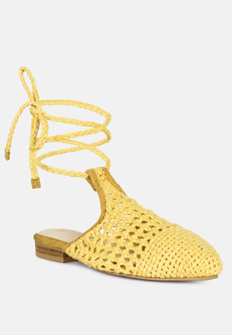Handwoven and knitted cotton mules with foam Lightly padded insole is all natural, comfortable and treasured handcrafted piece. The tie up flat mule cum sandals are simply chic and would make the perfect pair as beach wedding shoes for bridesmaids and even as mother of the bride shoes.