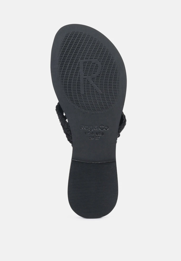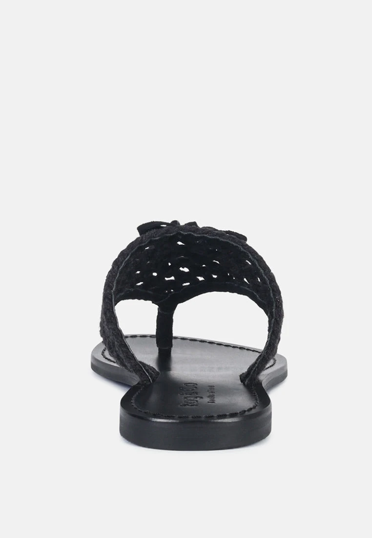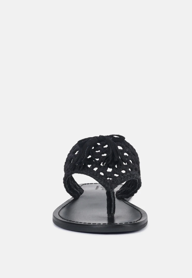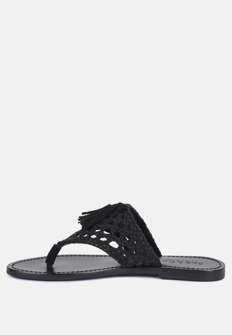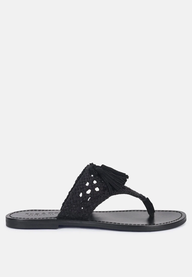 BEECH Handwoven Natural Black Suede Tassel Thong Flats