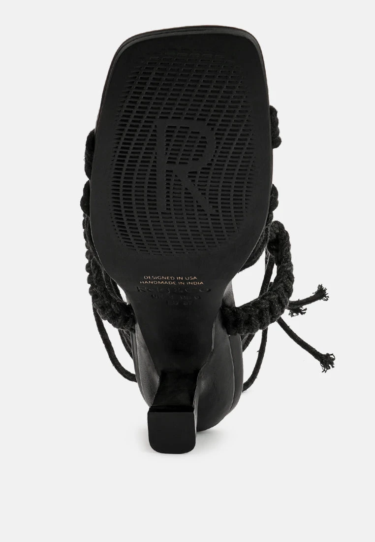 BEROE Black Braided Handcrafted Lace Up Sandal