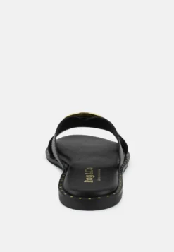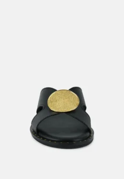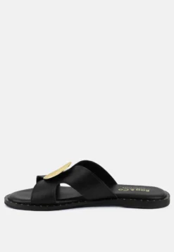 The metal embellishment enhances the overall aesthetic of the leather slip-on sandals. The tiny studs along the insole frame give it a lovely finish. The Soft Padded insole offer comfort while the X cut-out detail is visually appealing. They are easy to wear and look chic and fashionable.