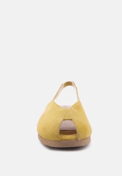 Smart, chic, and to the point! Embody sophistication in this flat sandal slingback mule, suede upper, elastic slingback strap, round-toe silhouette, and soft lining what else would a lady want from her shoes