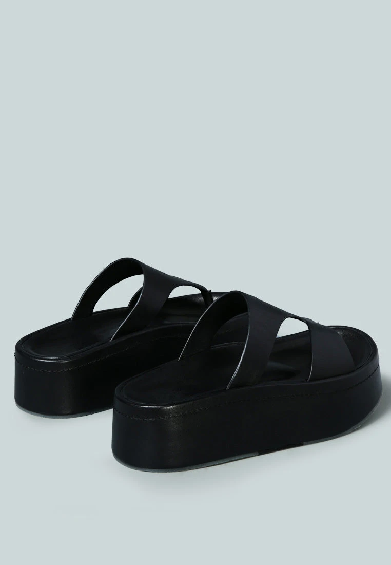 Solid slip-on Leather Platform Sandal upon molded platform base which settles feet well is a summer stunner. The casual sandal is all comfortable, stylish crafted with super-soft luxury leather over durable man-made sole is a favorite go-to shoe.