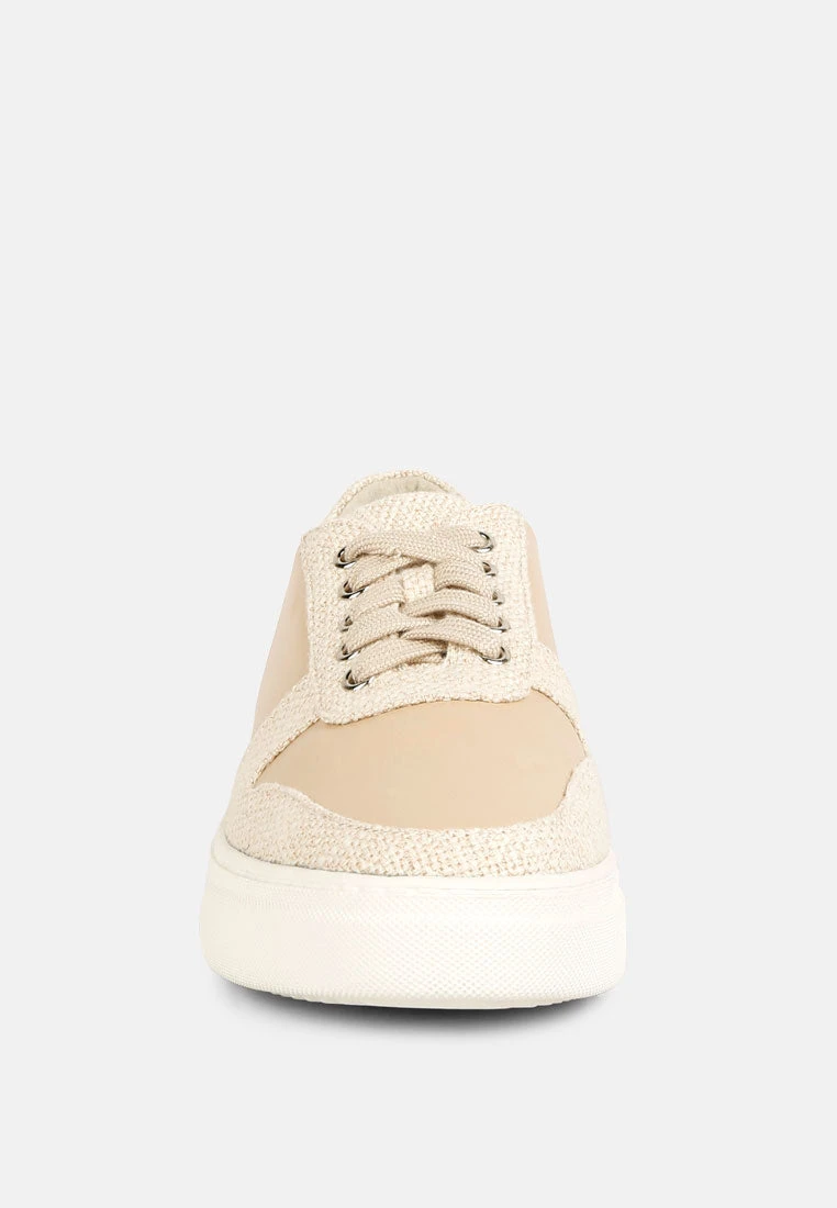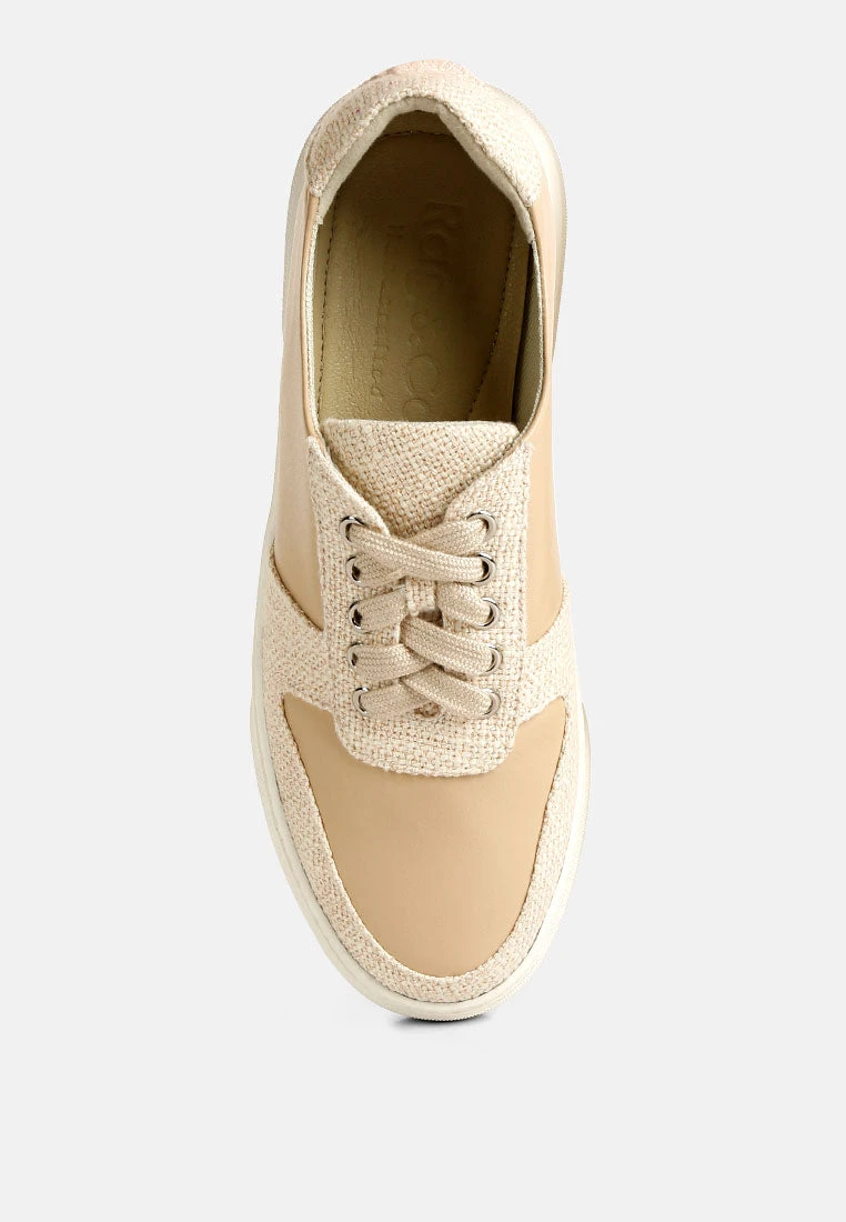 KJAER Dual Tone Leather Sneakers In Beige