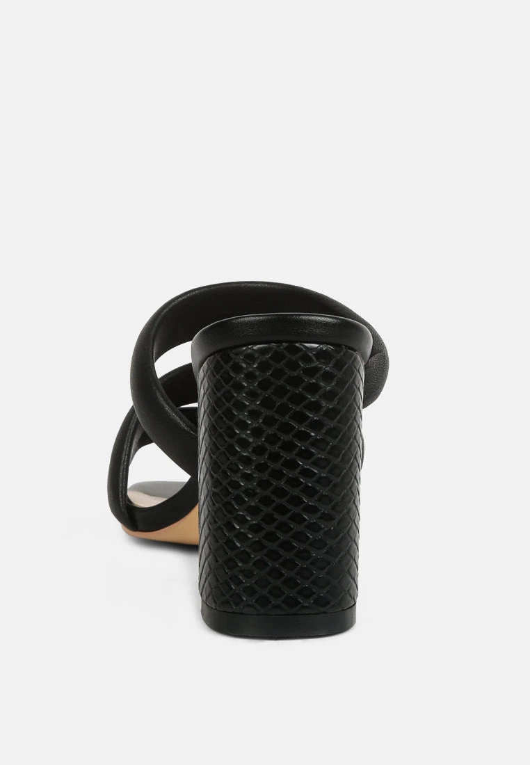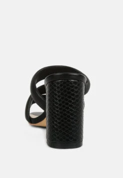 KYWE Black Textured Heel Chunky Strap Sandals