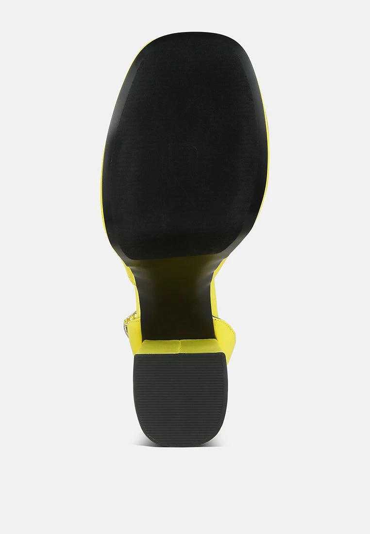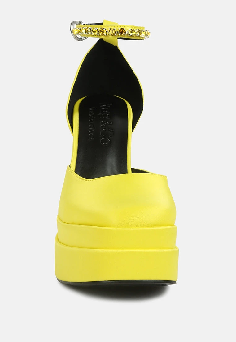 The sky high platform sandals are a beauty to behold with diamante embellished ankle strap. It comes with two ankle straps for you to choose from: one with rhinestones and another to keep it just simple! The satin finish look luscious and the soft insole cuts strain. These are great for fancy parties such as the bachelorette, cocktail party, weddings, etc.