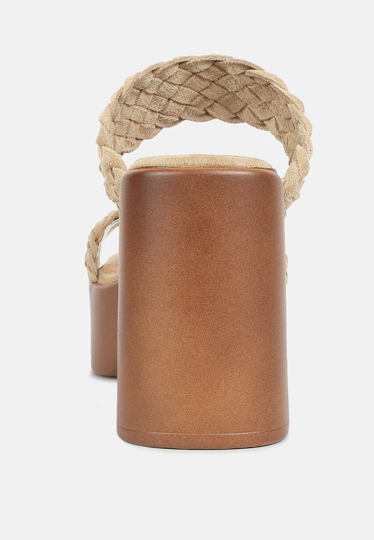 Misaki Woven Suede Strap Platform Sandals In Beige