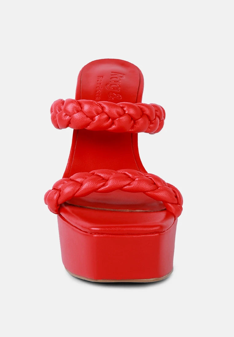 Stylish and bold – this style is theme of all shoe stories this summer. Soft Leatherette sandals with braided straps, the square cut toe sandal is crafted on raised platform which gives it an extra height.