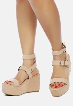 Wedges are stylish, they are comfortable and make feet look bountiful. This leather wedge sandal with buckle details on straps is to go for if you have an eye for wedges!