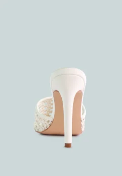 Soft Leatherette Raffia woven heeled slider sandals with lightly cushioned insole. Fits like dream and keeps feet relaxed. These are perfect for a beach wedding ceremony as wedding heels with a bohemian aesthetic touch.